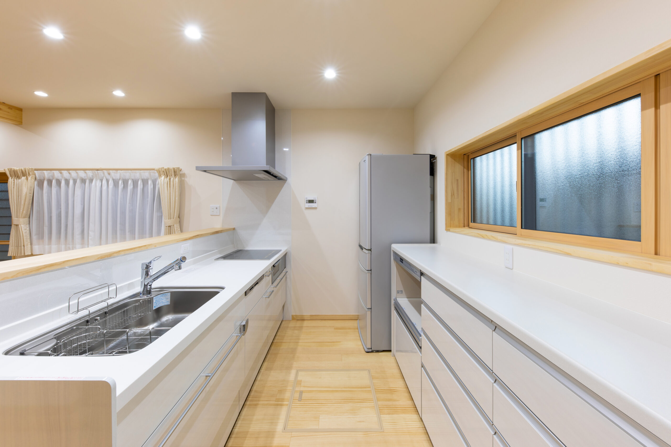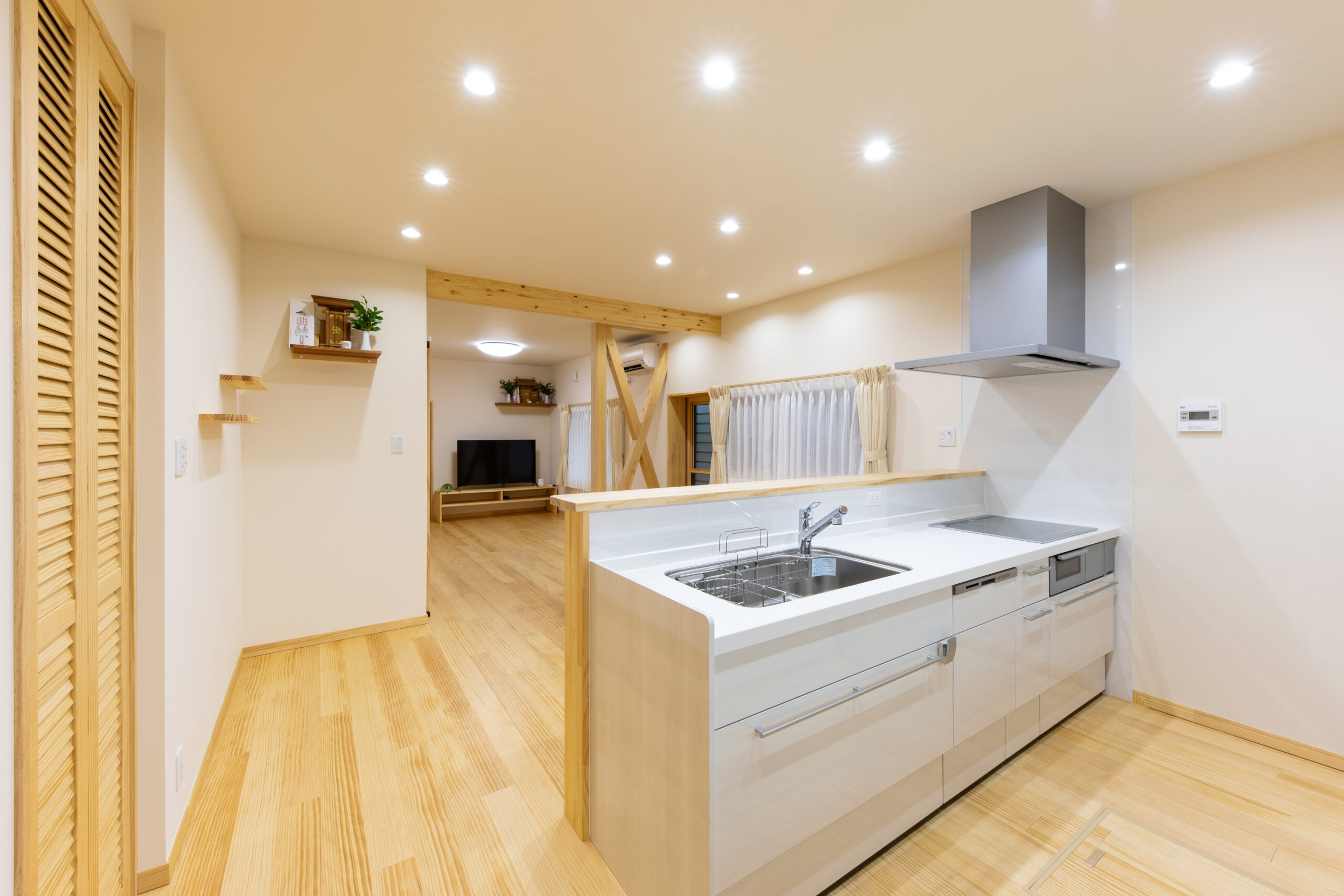 スケルトン・リノベーションで叶えた、断熱性能と「以前の心地よさ」の融合(加東市 C様邸) キッチン リフォーム 加東市 和室 断熱性UP 洗面台 浴室 無垢材 玄関 自然素材 造作家具 フルリノベーション 地域加東市 C様 フルリノベーション コメント間取りを大幅に変更するフルリノベーションを実施。 スケルトン状態からの工事でしたが、お施主様が愛着を感じていた『以前の住まいの空気感』を大切にし、木の質感を生かした温かなデザインで仕上げました。 LDKには木繊維断熱材を使用し、断熱性能を大幅に向上。思い出の詰まった雰囲気はそのままに、冬暖かく夏涼しい、現代のライフスタイルに寄り添う住まいへと生まれ変わりました。 After Before キッチン リフォーム 加東市 和室 断熱性UP 洗面台 浴室 無垢材 玄関 自然素材 造作家具 フルリノベーション