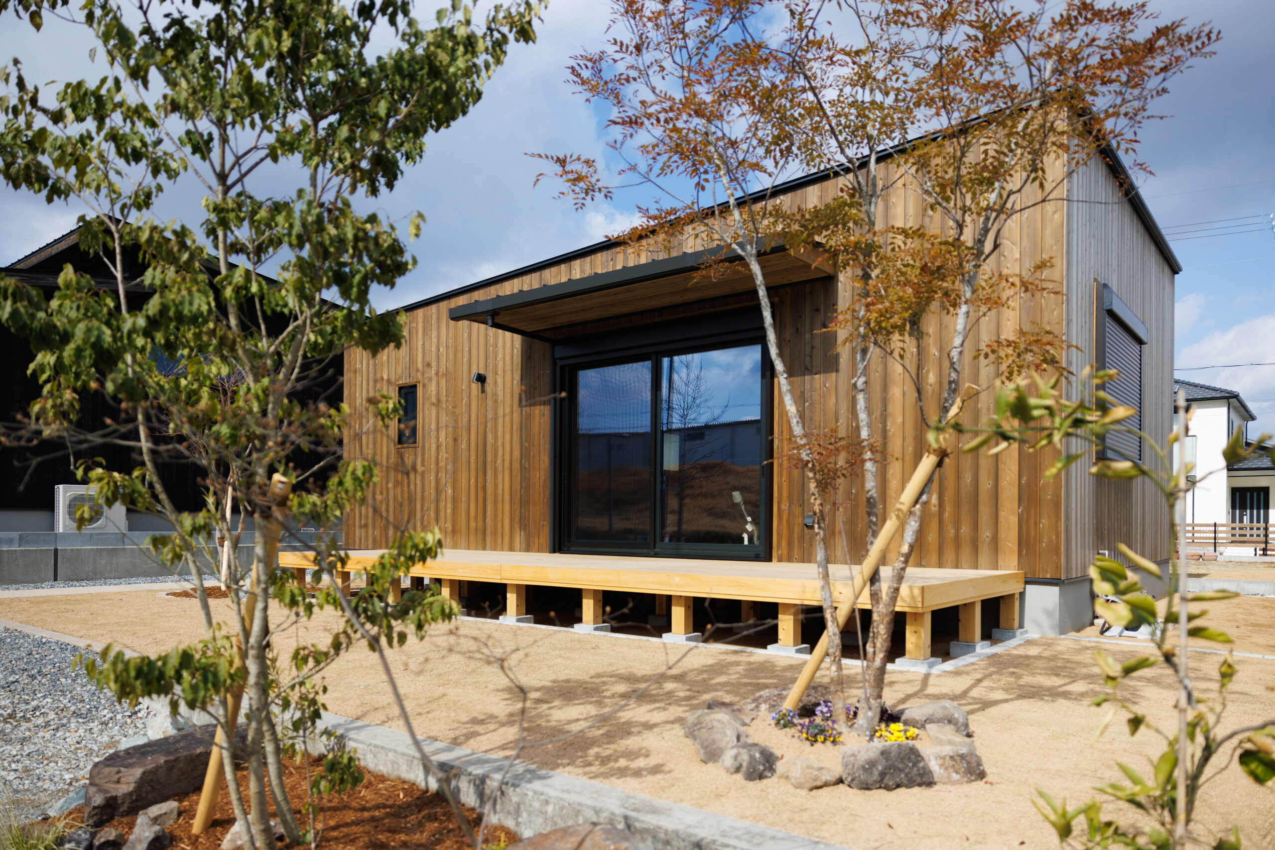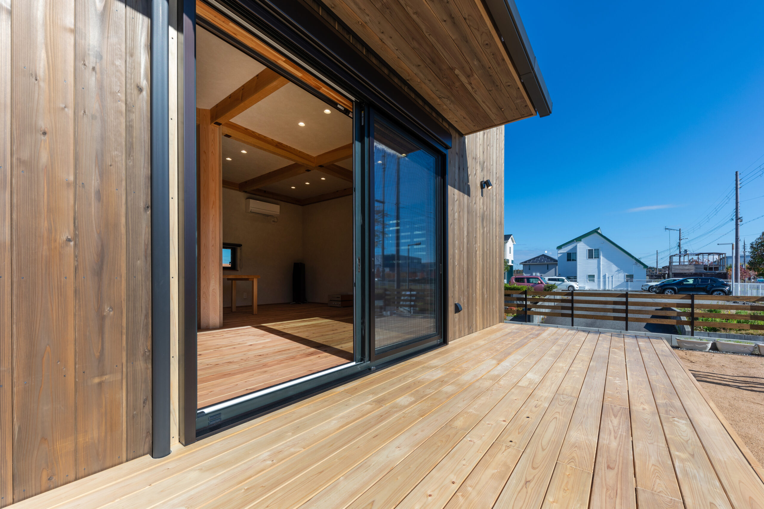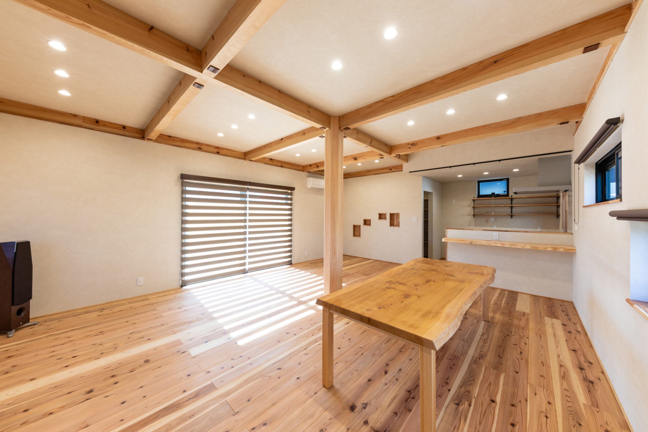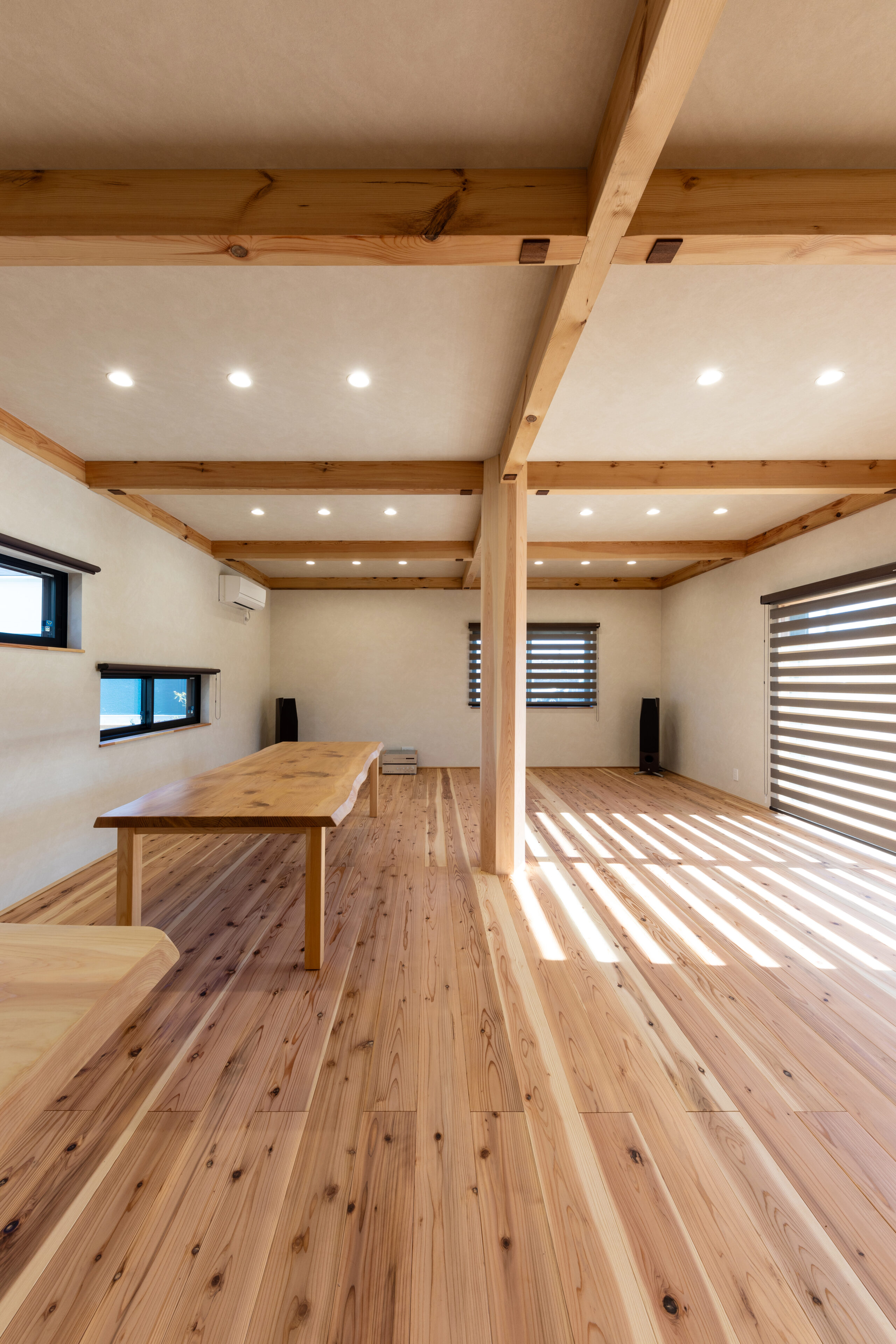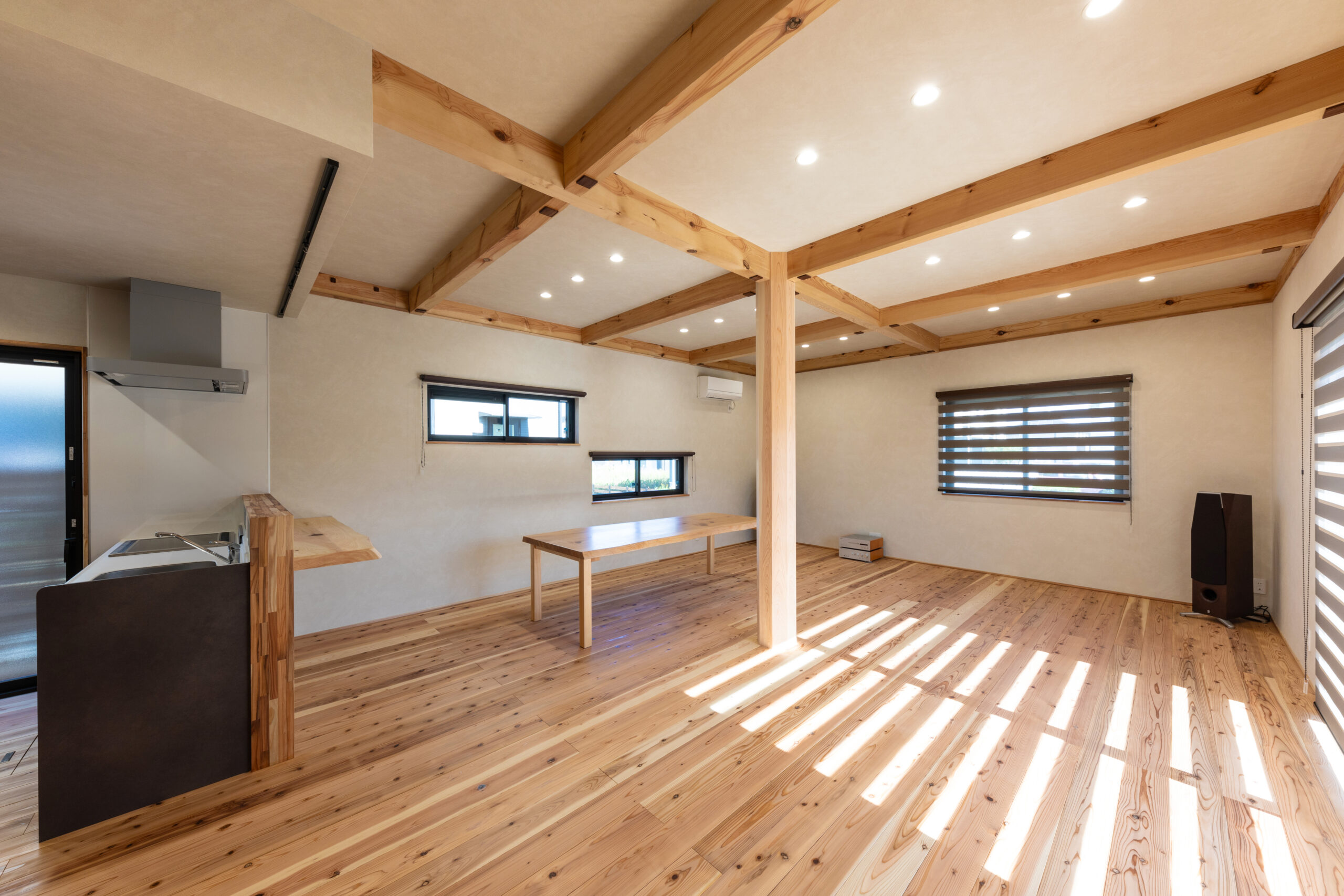 自然素材に包まれ仲間とくつろげるパーティーハウス(加東市 Y様) 加東市 断熱性UP 明るく広々 第三種換気 自然素材 造作家具 平屋 地域加東市 Y様 平屋 施工面積64.32㎡(19.46坪) 延床面積49.68㎡(15.03坪) 間取りパーティーハウス 性能・第3種換気 ・セルロースファイバー断熱材 コメント外壁は板にウッドロングエコを塗布しました。 構造材はプレカットではなく、大工墨付け・手刻み加工で施工しました。 スピーカーで少し大きめの音を流しても、音が外に響きにくいよう、遮音性に優れたセルロースファイバーを採用しました。